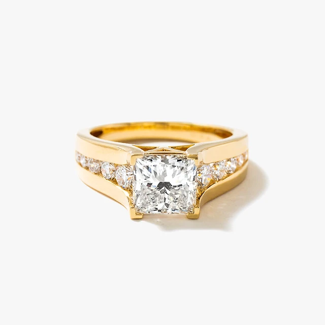 Lab Grown Princess Cut Diamond Engagement Ring 14K Yellow Gold (2.6