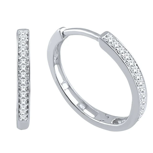 Tension-Set Diamond Huggie Hoop Earrings in 10K White Gold (0.04ct tw)
