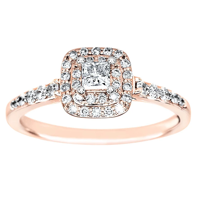 Bezel Set Diamond Engagement Halo Ring 14K Rose Gold (0.46ct tw)