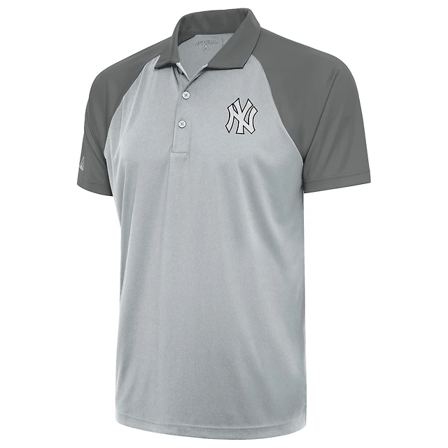 Men's Antigua Silver New York Yankees Metallic Nova Polo