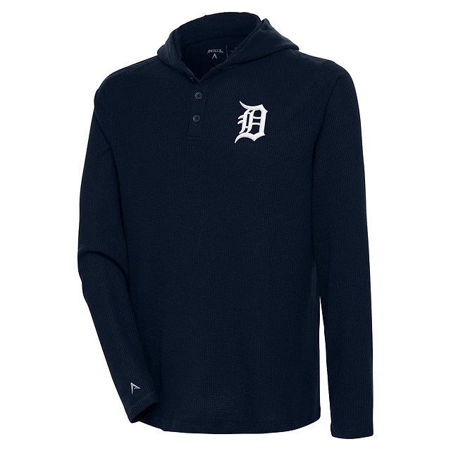 Men's Antigua Navy Detroit Tigers Strong Hold Long Sleeve Henley Hoodie T-Shirt