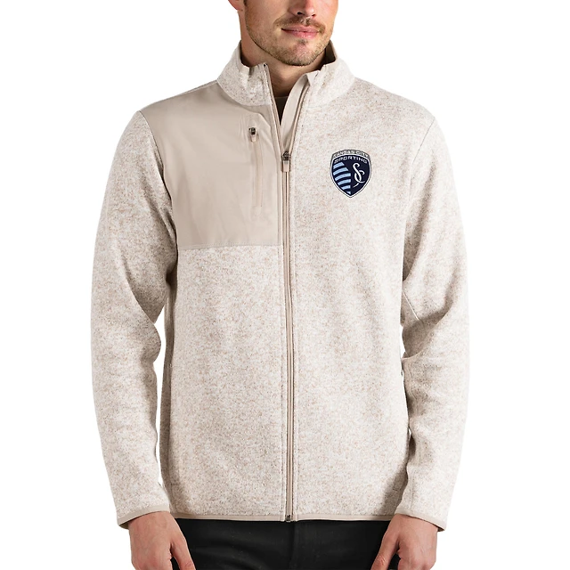 Men's Antigua Oatmeal Sporting Kansas City Fortune Full-Zip Jacket