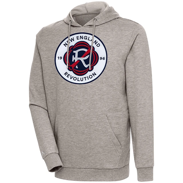 Men's Antigua Oatmeal New England Revolution Action Pullover Hoodie