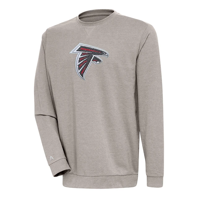 Men's Antigua Oatmeal Atlanta Falcons Reward Chenille Pullover Crewneck Sweatshirt