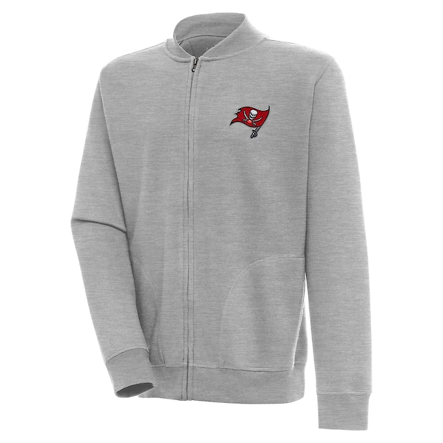 Men's Antigua Heather Gray Tampa Bay Buccaneers Victory Full-Zip Jacket