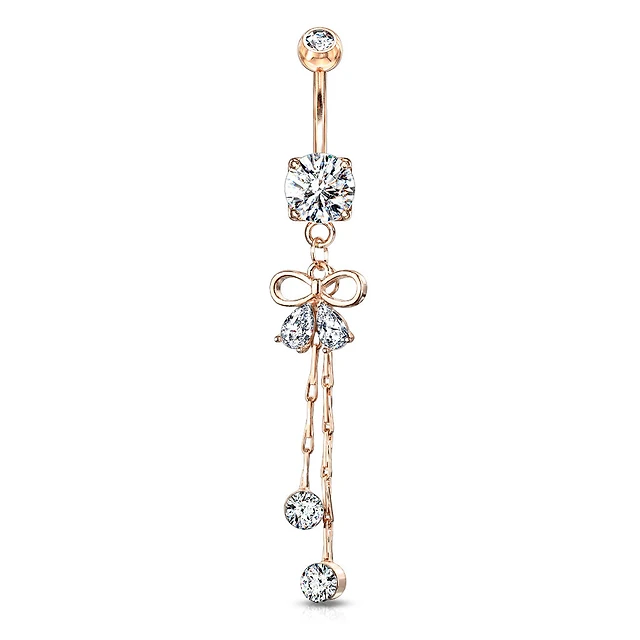 Claw-Set Crystal Bow Chain Navel Dangle 14g