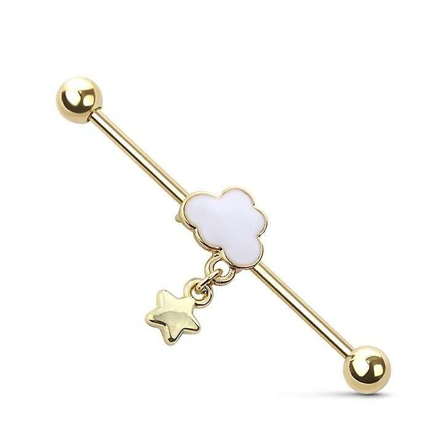 Cloud + Star Dangle Fancy Industrial Barbell 14g
