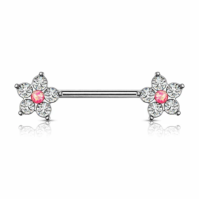 4 Point Filigree Oval Opal Nipple Barbell 14g
