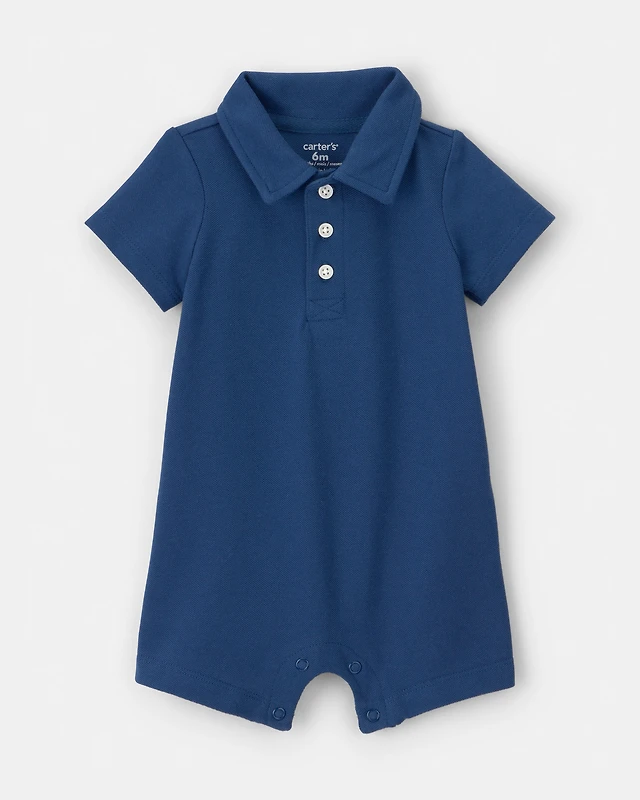 Baby Boy Pique Polo Short-Sleeve Romper - Navy Blue