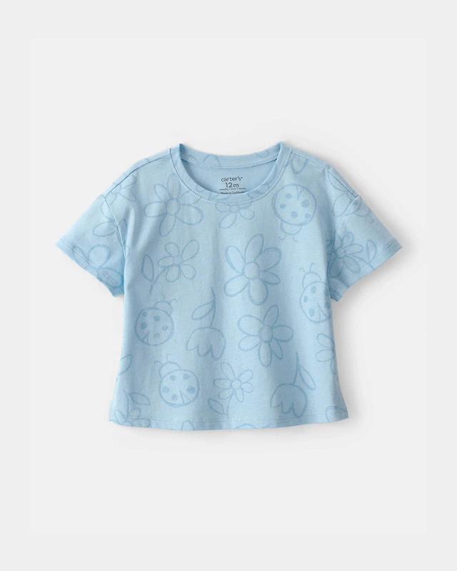 Baby Girl Ladybug Floral Top - Blue