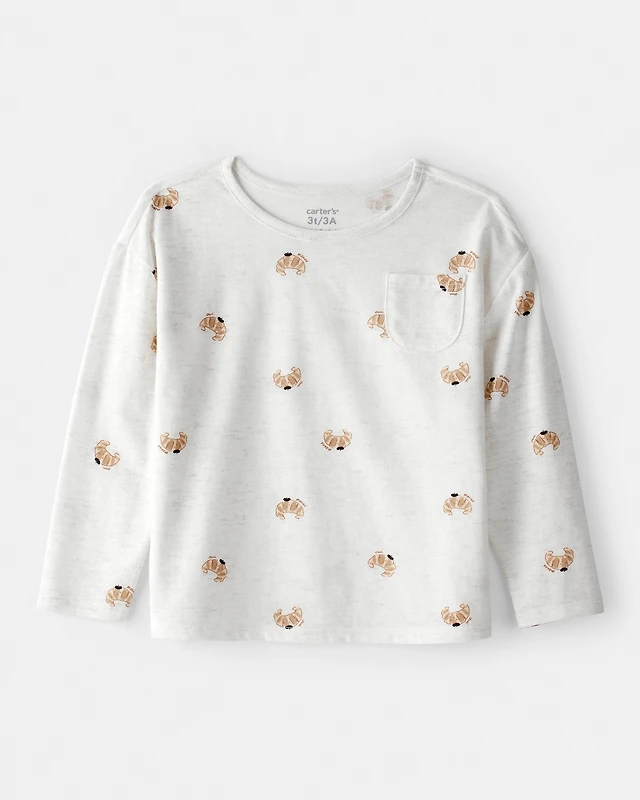 Toddler Girl Croissant Print Long Sleeve Tee - Cream
