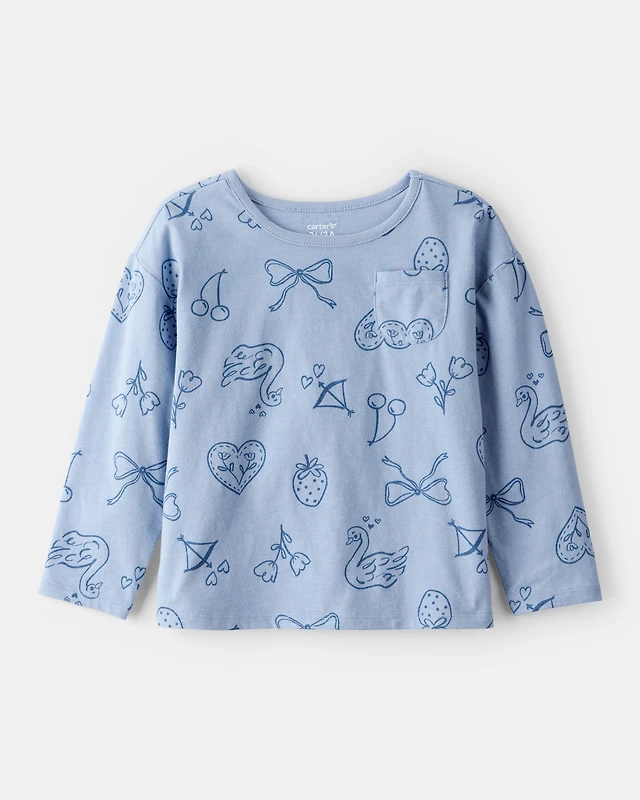 Toddler Girl Icon Print Long Sleeve Tee - Blue