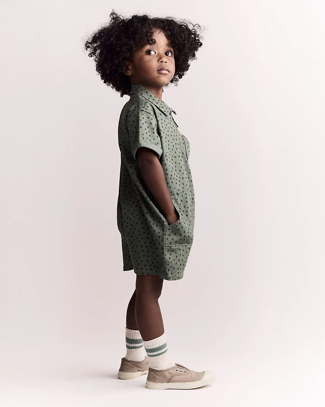 Toddler Girl Ric-Rac Swing Romper with Pockets - Teal