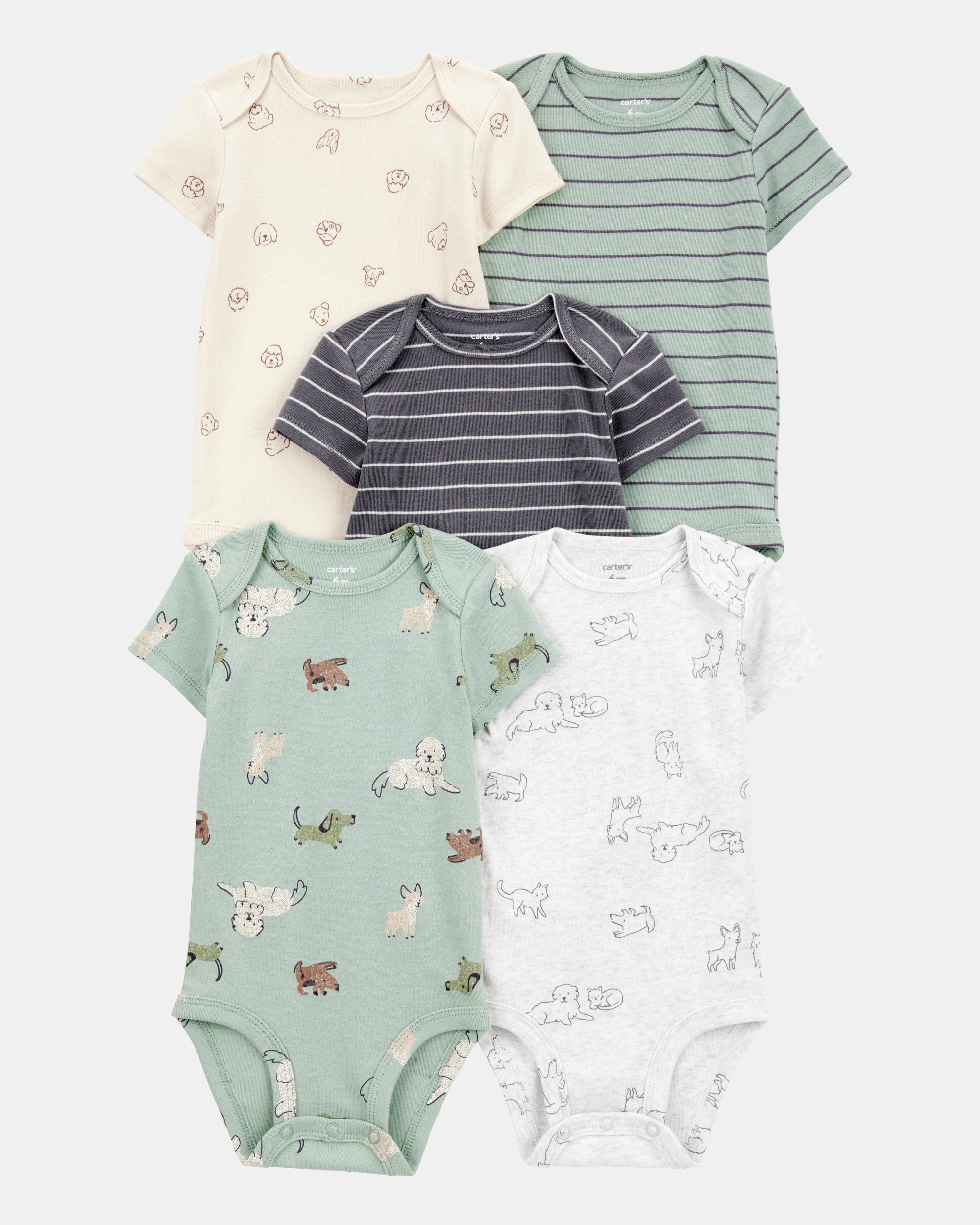 Baby 5-Pack Animals Short-Sleeve Cotton Bodysuits