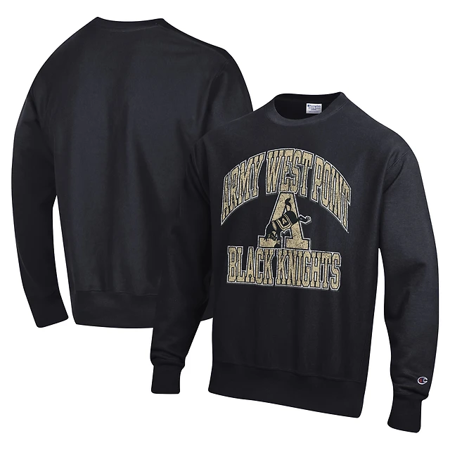 Men's Champion Black Army Knights Vault Late Night Reverse Weave Pullover Sweatshirt