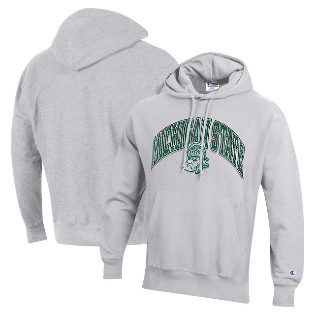 Men's Champion Gray Michigan State Spartans Vault Late Night Reverse Weave Pullover Hoodie