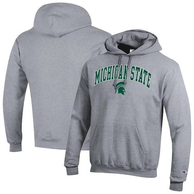 Men's Champion Heather Gray Michigan State Spartans Arch Over Logo Pullover Hoodie