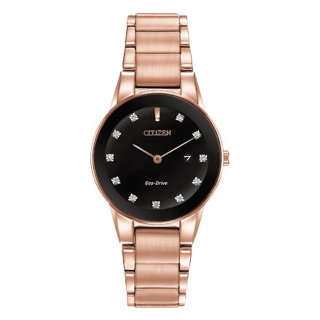 Citizen Axiom Ladies Eco-Drive Watch In Gold Tone Case and Black Leath