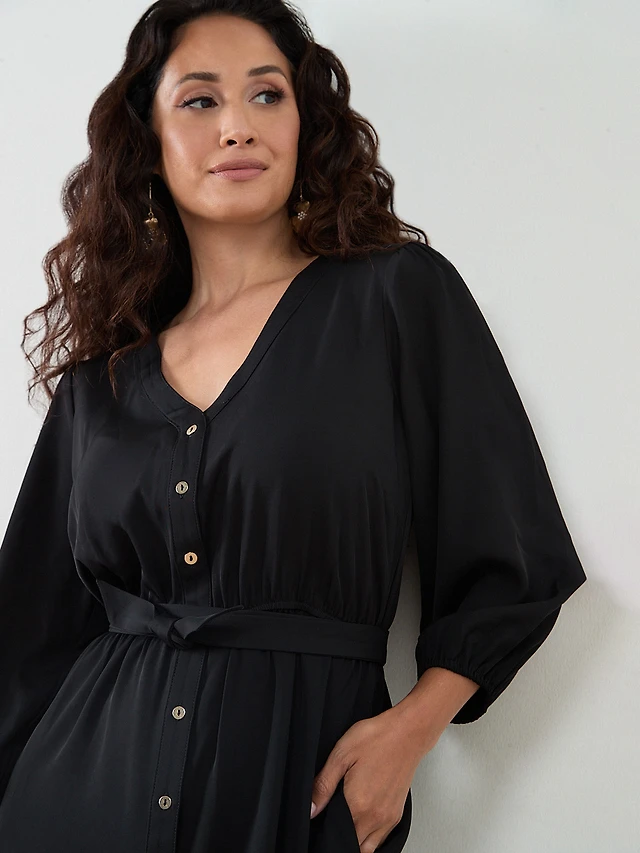 Petite 3/4 Sleeve Ruffle-Trim Blouse in Black Ditzy Floral