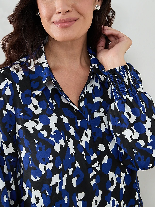 3/4 Sleeve Ruffle Trim Blouse in Black Floral