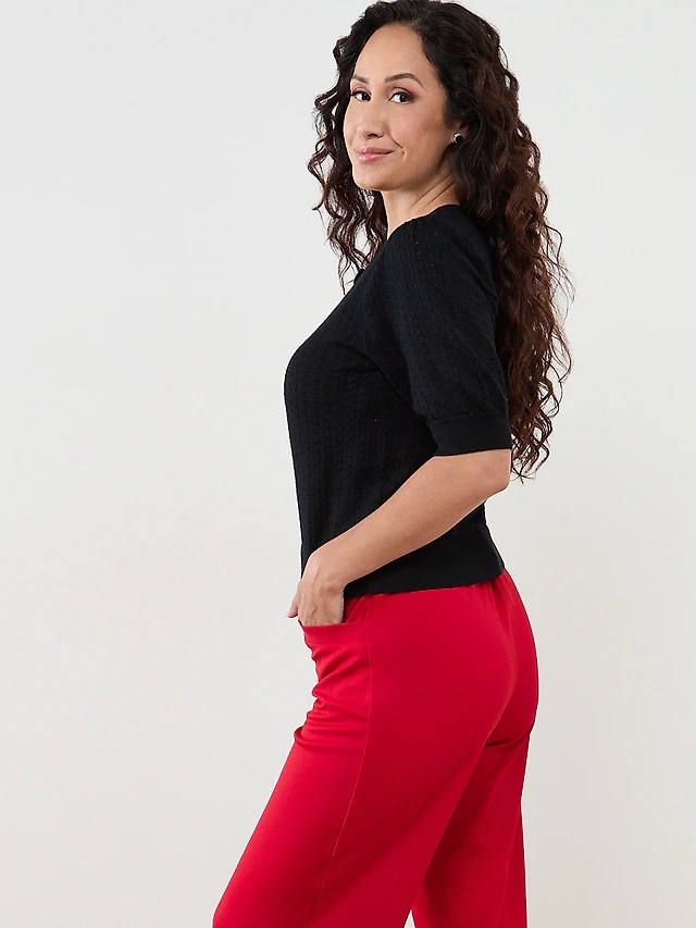 Petite Short Sleeve Lipstick Ditsy Crochet Trim Top