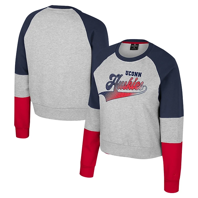 Women's Colosseum Heather Gray UConn Huskies Katinka Rhinestone Scoop Neck Pullover Sweatshirt