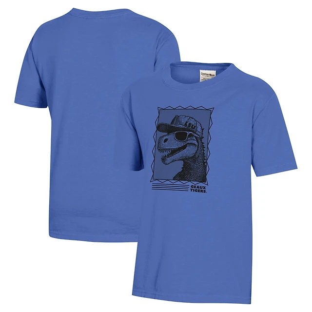 Youth ComfortWash Royal LSU Tigers Dino Cap T-Shirt