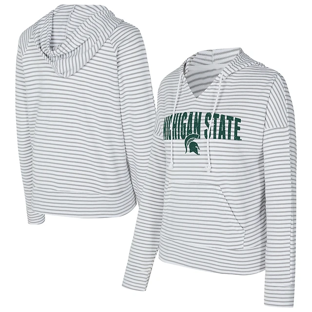 Men's Concepts Sport White/Gray Michigan State Spartans French Terry Striped V-Neck Pullover Hoodie