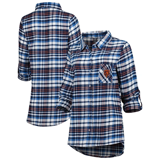 Women's Concepts Sport Navy Chicago Bears Mainstay Plaid Full-Button Long Sleeve Nightshirt