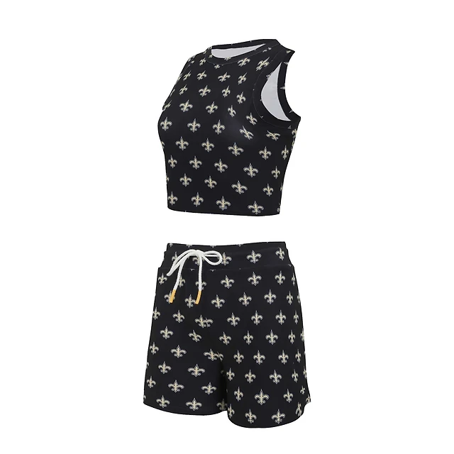Women's Concepts Sport New Orleans Saints Gauge Allover Print Cropped Tank Top & Shorts Sleep Set