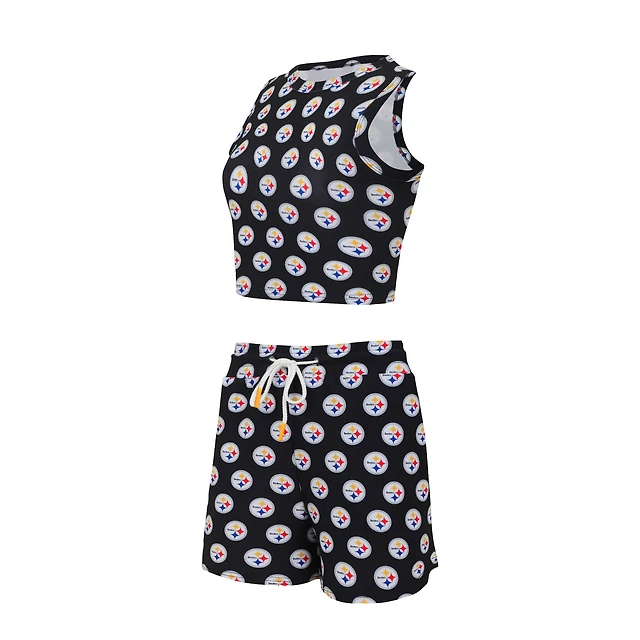 Women's Concepts Sport Pittsburgh Steelers Gauge Allover Print Cropped Tank Top & Shorts Sleep Set