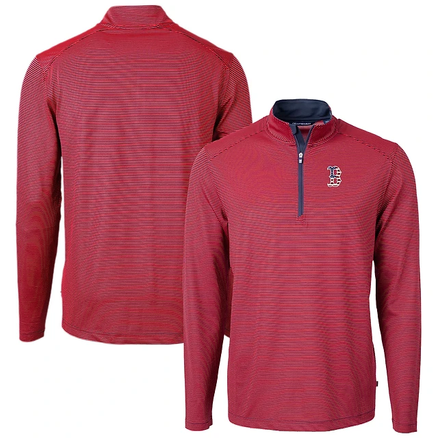 Men's Cutter & Buck Gray/White Louisville Cardinals Big Tall Virtue Eco Pique Micro Stripe Recycled Quarter-Zip Pullover Top