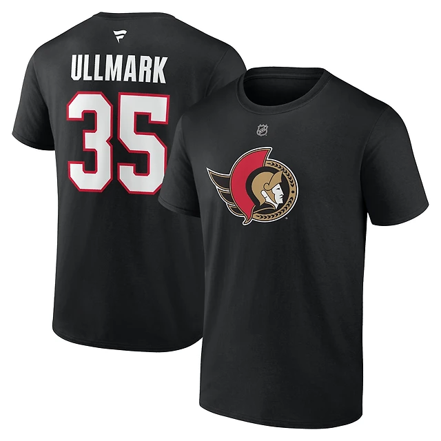 Men's Fanatics Linus Ullmark Black Ottawa Senators Authentic Stack Name & Number T-Shirt