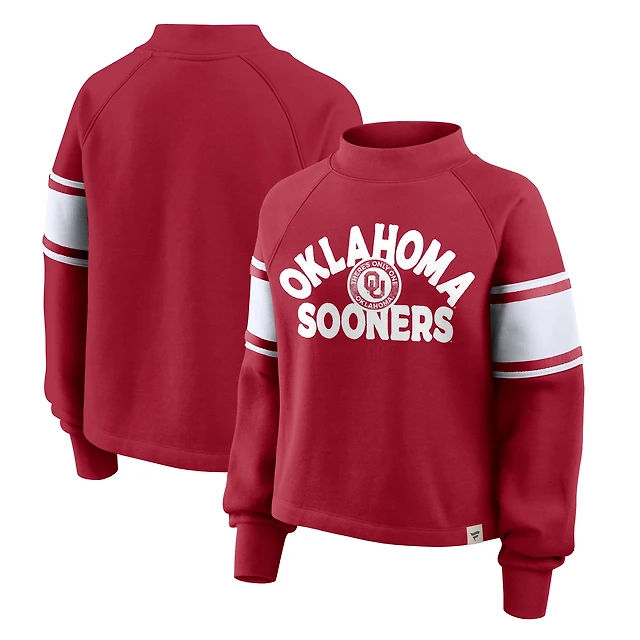 Women's Fanatics Crimson Oklahoma Sooners Oversized Hometown Premium Punt Coverage Raglan Pullover Sweatshirt
