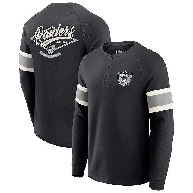 Men's Darius Rucker Collection by Fanatics Black Las Vegas Raiders Waffle-Knit Raglan Long Sleeve Henley T-Shirt