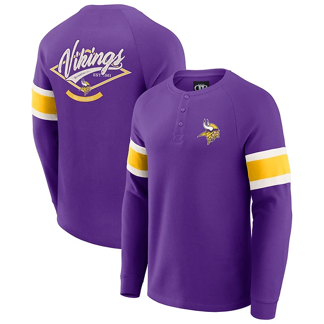 Men's Darius Rucker Collection by Fanatics Purple Minnesota Vikings Waffle-Knit Raglan Long Sleeve Henley T-Shirt
