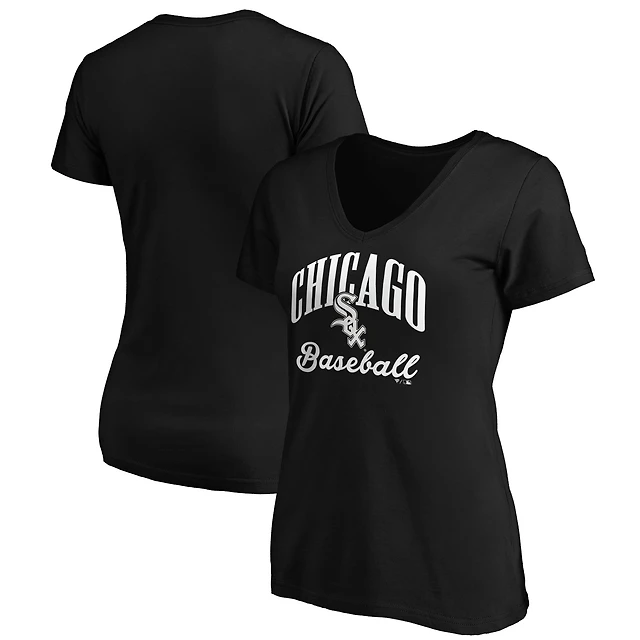 Women's Fanatics Black Chicago White Sox Victory Script V-Neck T-Shirt