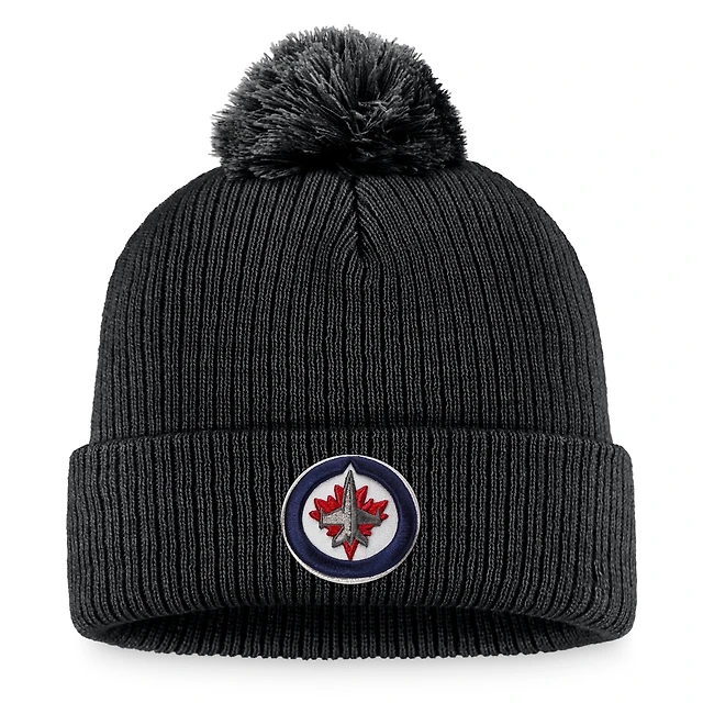 Men's Fanatics Black Winnipeg Jets Core Primary Logo Cuffed Knit Hat with Pom
