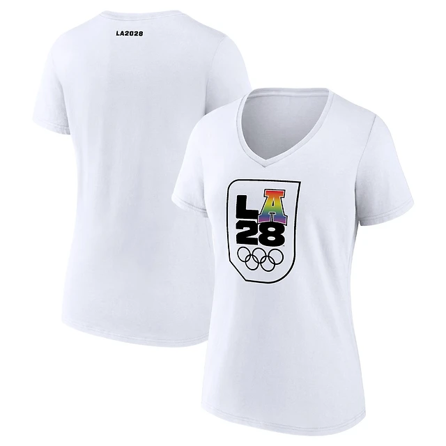 Women's White LA 2028 Summer Olympics Pride V-Neck T-Shirt