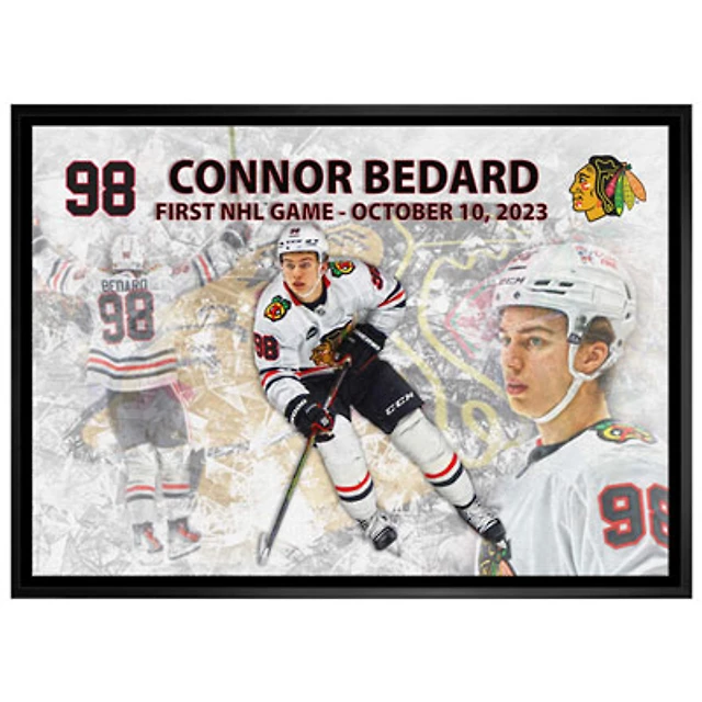 Frameworth Chicago BlackHawks: Connor Bedard First Game Framed Canvas (31x22")