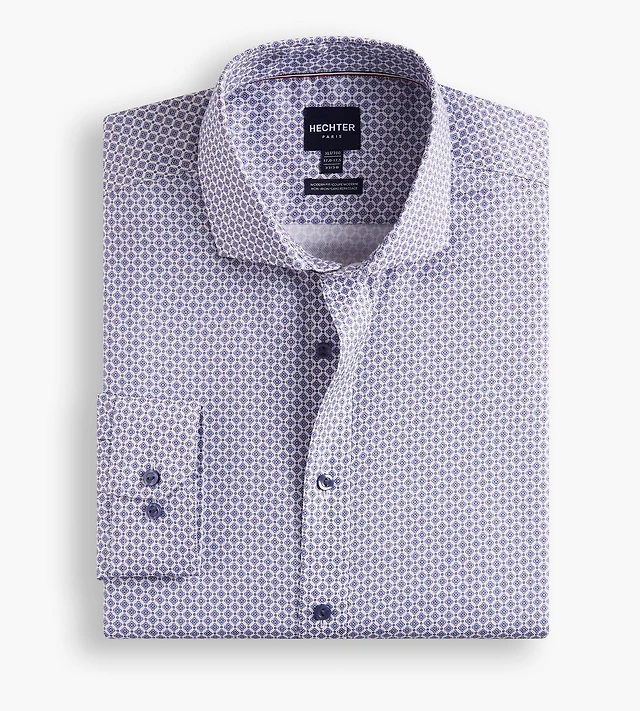 360 Stretch Knit Geo Print Dress Shirt