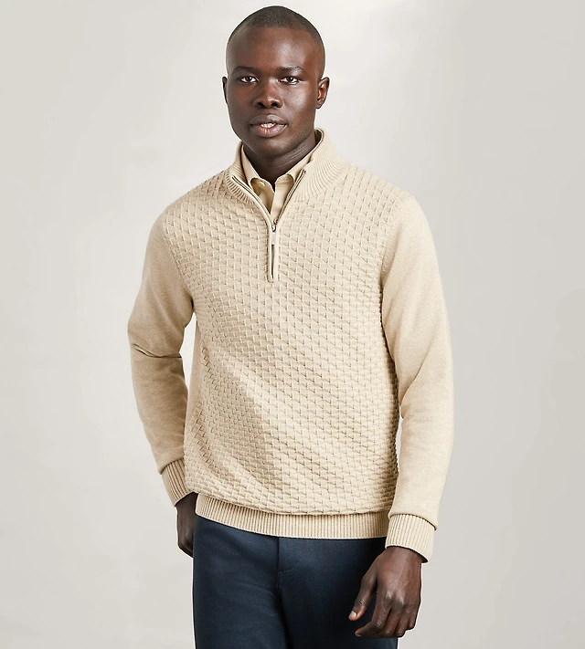 Long Sleeve Cotton Merino Blend 1/4 Zip Sweater