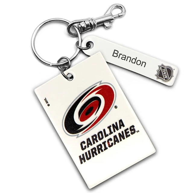 White Carolina Hurricanes Personalized Leather Rectangle Keychain