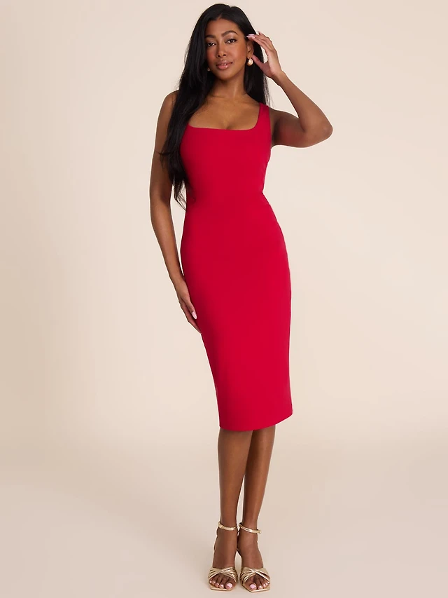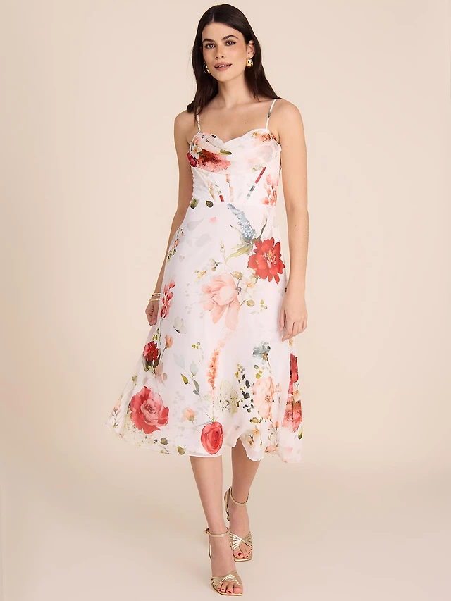 Midi Fit & Flare Dress With Floral Mesh Skirt