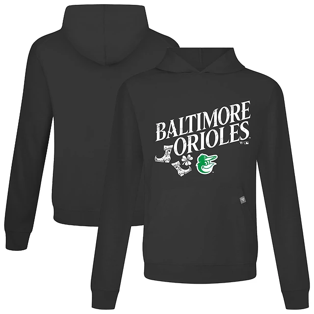 Men's Levelwear Black Baltimore Orioles St. Patrick's Day Relay Boots Pullover Hoodie