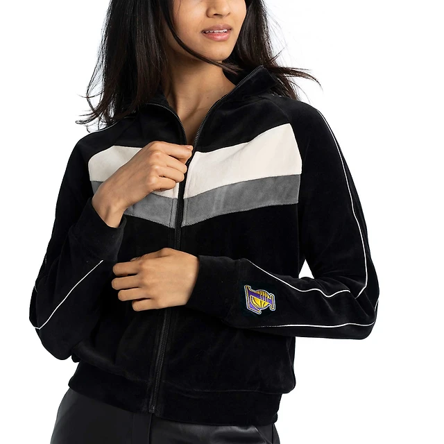 Women's Lusso Black Los Angeles Lakers Nixie Colorblock Chevron Raglan Full-Zip Track Jacket