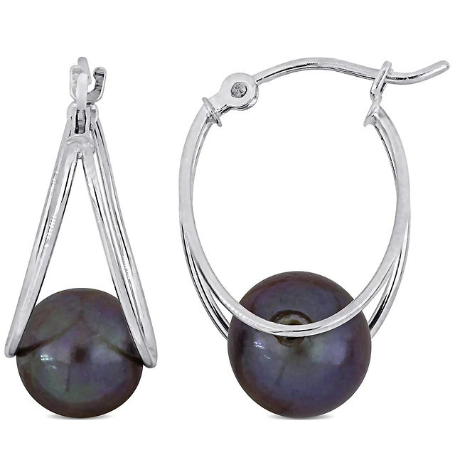 Miabella Black Freshwater Cultured Pearl 10K White Gold Open Hoop Earrings