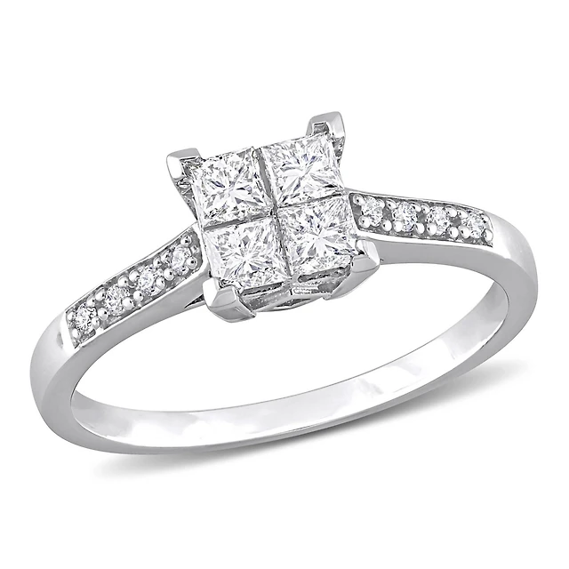 Miabella 5/8 Carat T.W. Diamond 10K White Gold Princess-cut Quad Engagement Ring