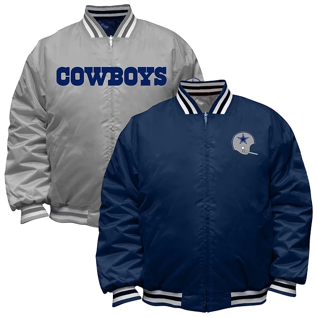 Men's Mitchell & Ness Navy/Silver Dallas Cowboys Big Tall Throwback Reversible Full-Zip Jacket