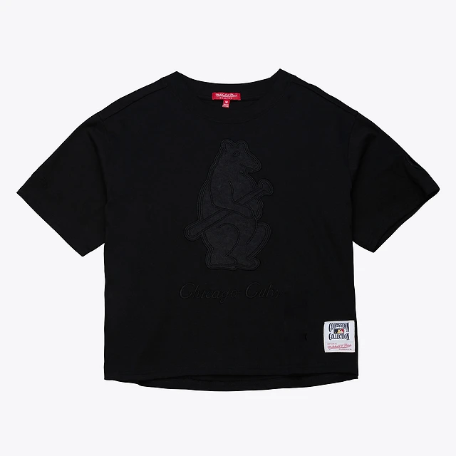 Women's Mitchell & Ness Black Chicago Cubs Cooperstown Collection Phantom Cropped T-Shirt